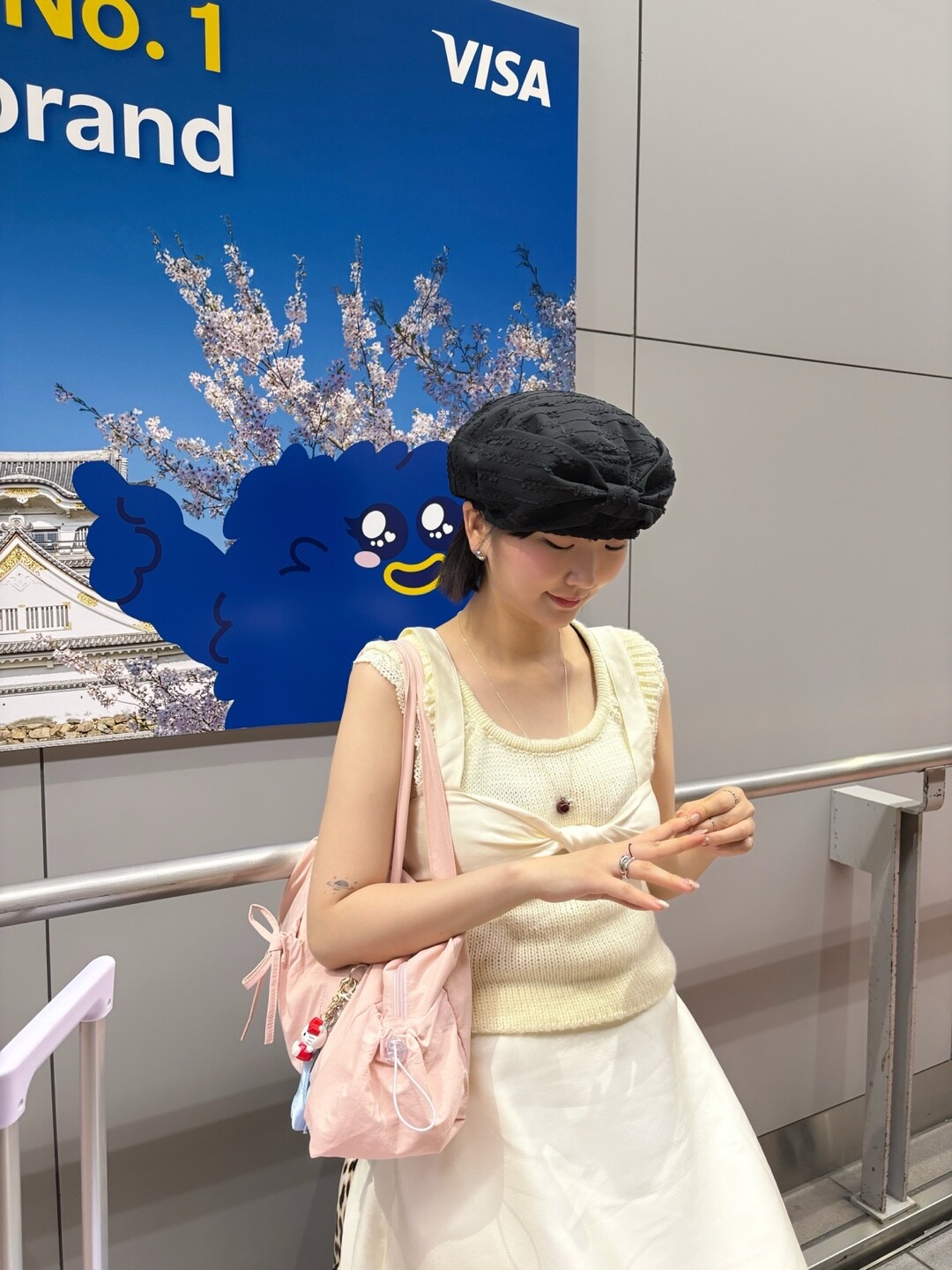 가벼운 여름소재로 나온 앞코에 리본이 달려 사랑스러운 모자에요 !